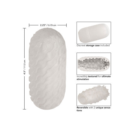 Il piacere infinito è nelle vostre mani con l'incredibile Boundless Reversible Nubby Stroker. L'accarezzatore di qualità superiore soddisfa il vostro piacere con una stimolazione testurizzata reversibile, un design chiuso e una comoda custodia. Stuzzica e soddisfa con l'esclusivo design reversibile, che comprende una superficie morbida e increspata e una stuzzicante trama a nido d'ape per sensazioni uniche di accarezzamento. Un'esperienza di piacere esplosiva grazie al design chiuso che offre un'aspirazione superiore. Sia a casa che ovunque il piacere vi porti, il design compatto da 11,5 cm (4,5") e la comoda custodia lo rendono il compagno di viaggio che desiderate. Il pregiato TPR non è profumato, non contiene ftalati e non richiede manutenzione, per mantenere i vostri punti più sensibili felici e sani.